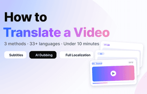Sie können ein Video auf drei Arten übersetzen: übersetzte Untertitel hinzufügen, die Tonspur durch KI-Synchronisation ersetzen oder eine vollständige KI-Lokalisierung durchführen (Stimme + Lippensynchronisation + Untertitel). Im Jahr 2026 ist KI-Synchronisation der schnellste Weg — die meisten Videos unter 10 Minuten sind in unter 5 Minuten in 33+ Sprachen vollständig übersetzt, während traditionelle Workflows (menschlicher Übersetzer + Synchronisationsstudio) immer noch 5 bis 15 Werktage benötigen. Dieser Leitfaden vergleicht die drei Methoden, führt Sie durch den genauen 5-Schritte-Workflow und zeigt Ihnen, wie Sie je nach Videotyp, Zielgruppe und Budget die richtige Wahl treffen.