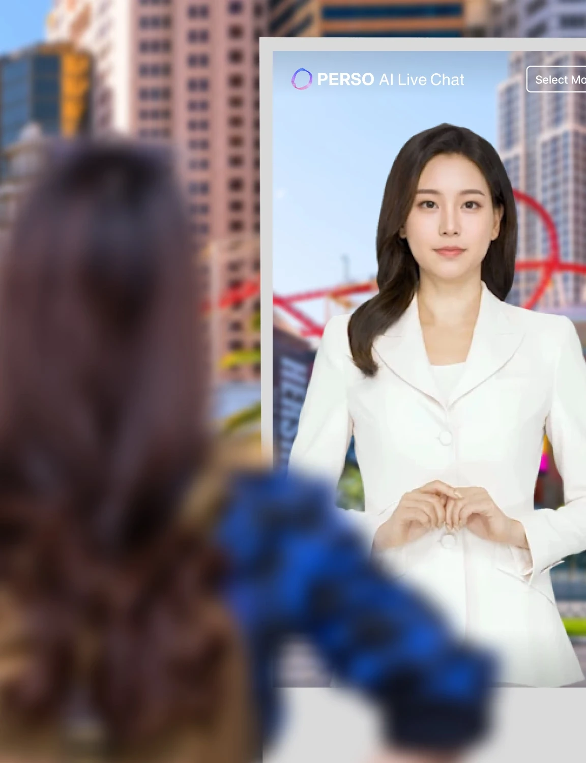 실사형 AI 휴먼 · 몰입형 대화 경험 브랜드에 맞춘 커스터마이징으로, 고객을 위한 단 하나의 AI Human Kiosk