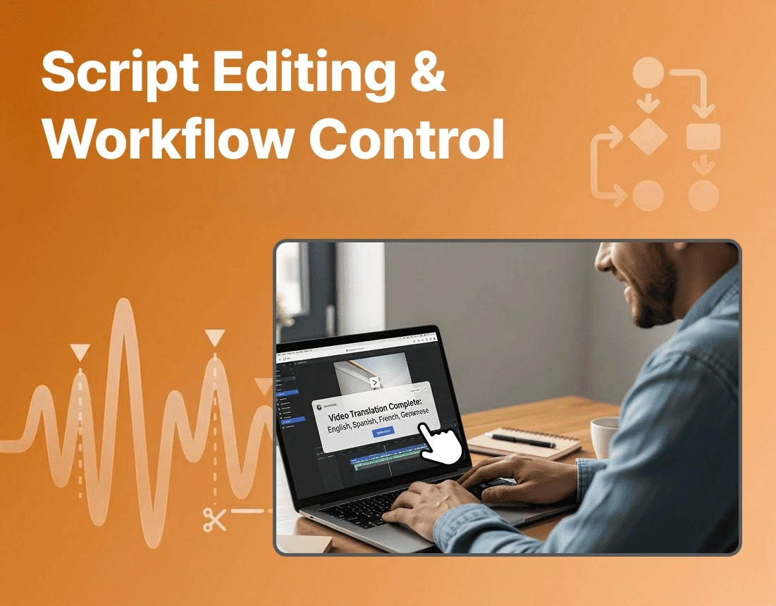 Integrated workflow combining AI lip sync, voice generation, script editing, and export tools