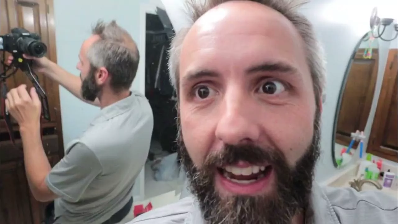 Minulla on vähän harmaita partakarvoja täällä parrassa, ja myös täällä ylhäällä. Mutta, öö, minä huomasin sen, enkä minä… Se ei varsinaisesti häiritse minua kovinkaan paljoa, mutta vaimoni päätti hankkia tämän Boldify Hairline Powder -tuotteen. Olen tätä aiemmin katsonut, koska ylhäällä on kalju kohta. Olen puhunut siitä ennenkin. Minulla on täällä pientä untuvaa, ja jos tätä ainetta laittaa siihen, sen pitäisi peittää sen. Joten, öh, halusin näyttää tämän teille suoraan paketista otettuna.