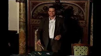 The speaker is performing and explaining magic tricks to an audience seated around a table, acting as an instructor or demonstrator.