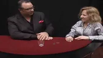 Speaker 01 (Magician) is demonstrating a coin magic trick to Speaker 02 (Observer), who is reacting to the performance.