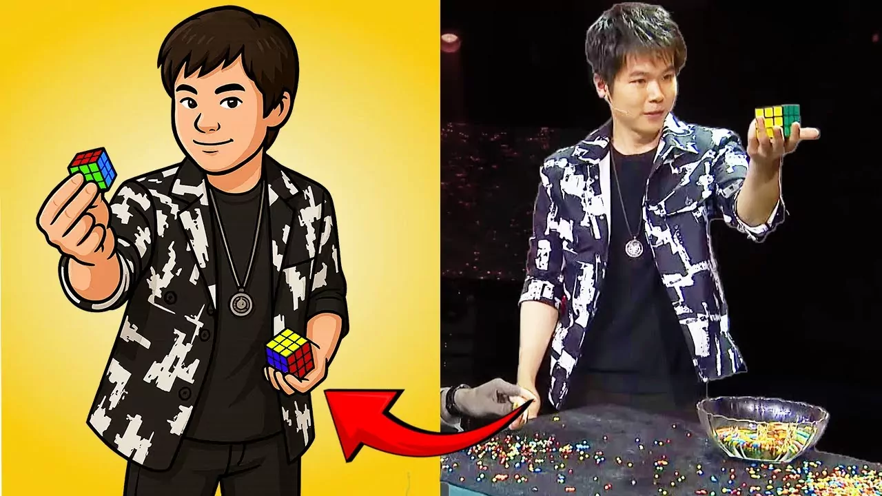 What? In this video, I will reveal Eric Chien's chocolate Rubik's cube magic on Asia's Got Talent. Here's what happened. Eric begins the trick by pouring chocolate into a glass bowl. He then starts filling his left hand when, all of a sudden, a Rubik's cube falls out. He asks a spectator to mix up the Rubik's cube and cover it with their hand for now. He then cups his hand, fills it with chocolate, and, upon pouring it onto the table, a large cube suddenly appears.