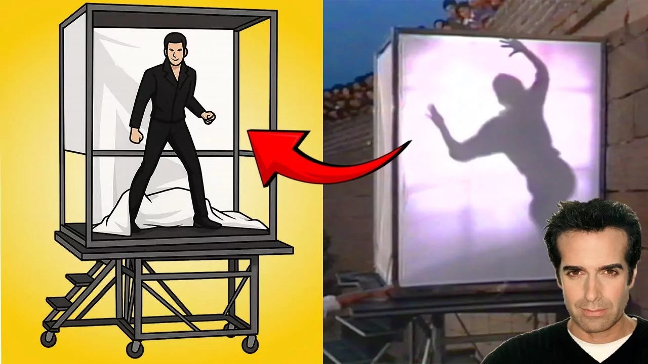 In this video, I will reveal the secrets behind David Copperfield's passing through the Great Wall of China illusion. Here's a quick recap of what happened in the performance. In this illusion, David Copperfield descends a staircase onto a platform with a backlight attached to one side near the top. A curtain drops from all three sides, and the backlight creates a shadow, seemingly indicating that David Copperfield is still inside a closed compartment. He then removes his white towel and appears to melt straight into the Great Wall of China. The curtains are swiftly removed and David Copperfield has apparently vanished.