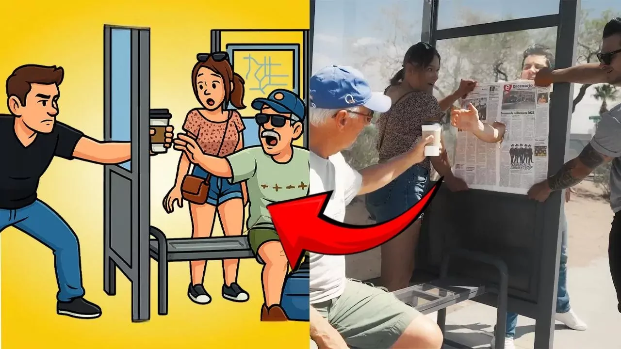 In this video, I will reveal Xavier Mortimer's passing through solid glass at a bus stop illusion. Here's what happened. In this trick, Xavier asks two volunteers to hold a newspaper against the transparent acrylic panel of a bus stop shelter. Then, he grabs a cup of coffee through the acrylic panel from the other side. Afterward, he mysteriously walks through the shelter's transparent wall. Well, how did he perform this trick? Here is the explanation.