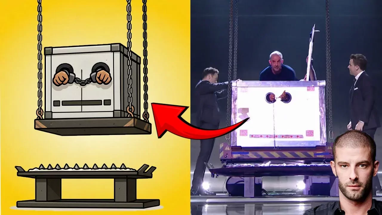 इस वीडियो में, मैं ब्रिटेन गॉट टैलेंट पर डार्सी ओक के खतरनाक बॉक्स से भागने वाले भ्रम का खुलासा करूँगा। आइए जल्दी से देखें क्या हुआ था। डार्सी ओक प्रदर्शन की शुरुआत एक धातु के बक्से से करते हैं, जो फुलझड़ियों से जुड़ा होता है, जिससे फुलझड़ी की तार जलने पर बक्से में विस्फोट हो जाता। फिर वह धातु के बक्से में लाइव कैमरा फ़ीड लगाते हैं ताकि अंदर से सब कुछ बिना किसी संदिग्ध गतिविधि के दिखाया जा सके। एंट और डेक हथकड़ियों की जांच कर पुष्टि करते हैं कि वे असली हैं। एक हथकड़ी दाईं कलाई पर पहनने के बाद, वह हाथ छेदों से डालकर खुद को बक्से से हथकड़ी लगा लेते हैं।