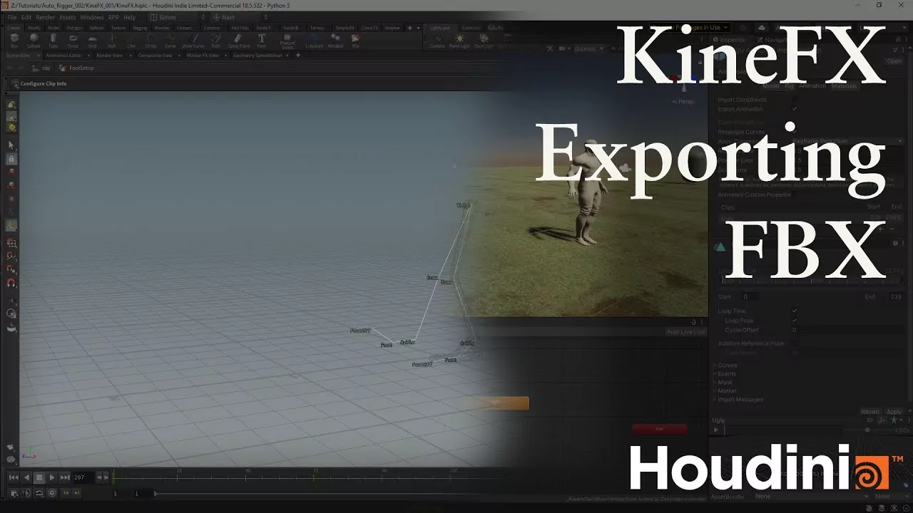 This video will give a basic overview of FBX export for KineFX. We're given a lot of control over the export due to the way it is set up in KineFX. Because of the amount of control we have, I will only cover the basics of what is needed to get a character out into a package like Unity or Unreal. I'll go over the scene quickly and explain this monstrosity that I have created. This is, of course, absolutely hideous and has been set up purely to, as an example to show how to export.
