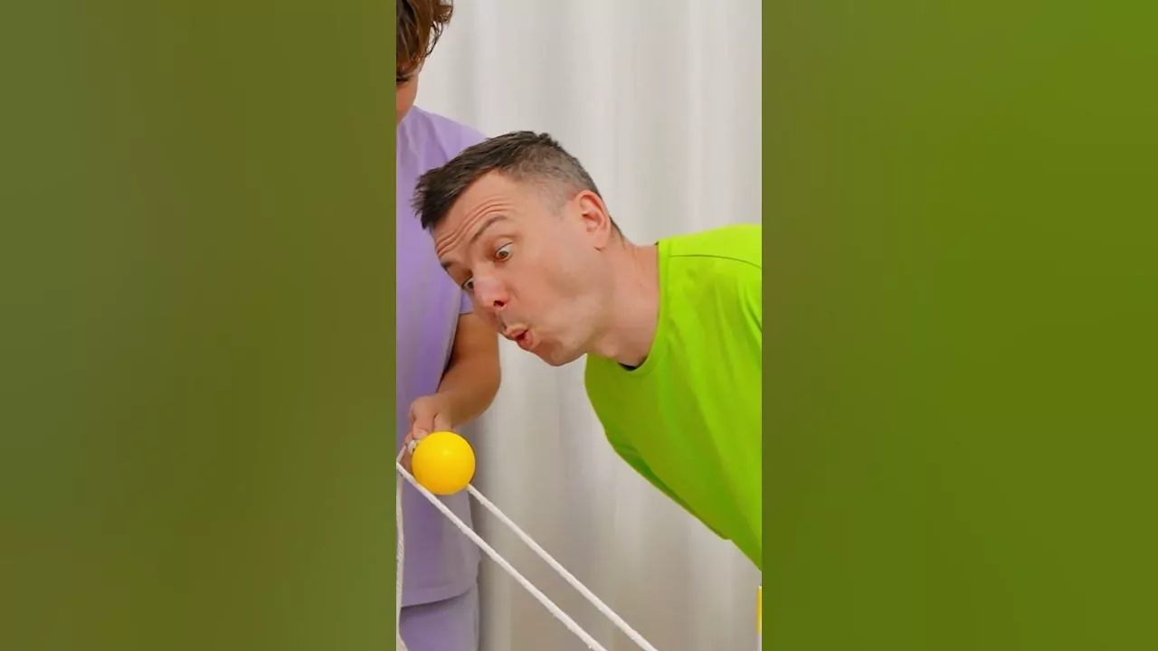 Let's play keep the ball on the rope game. Wow. All right. There's Three, two. Daddy. Daddy.