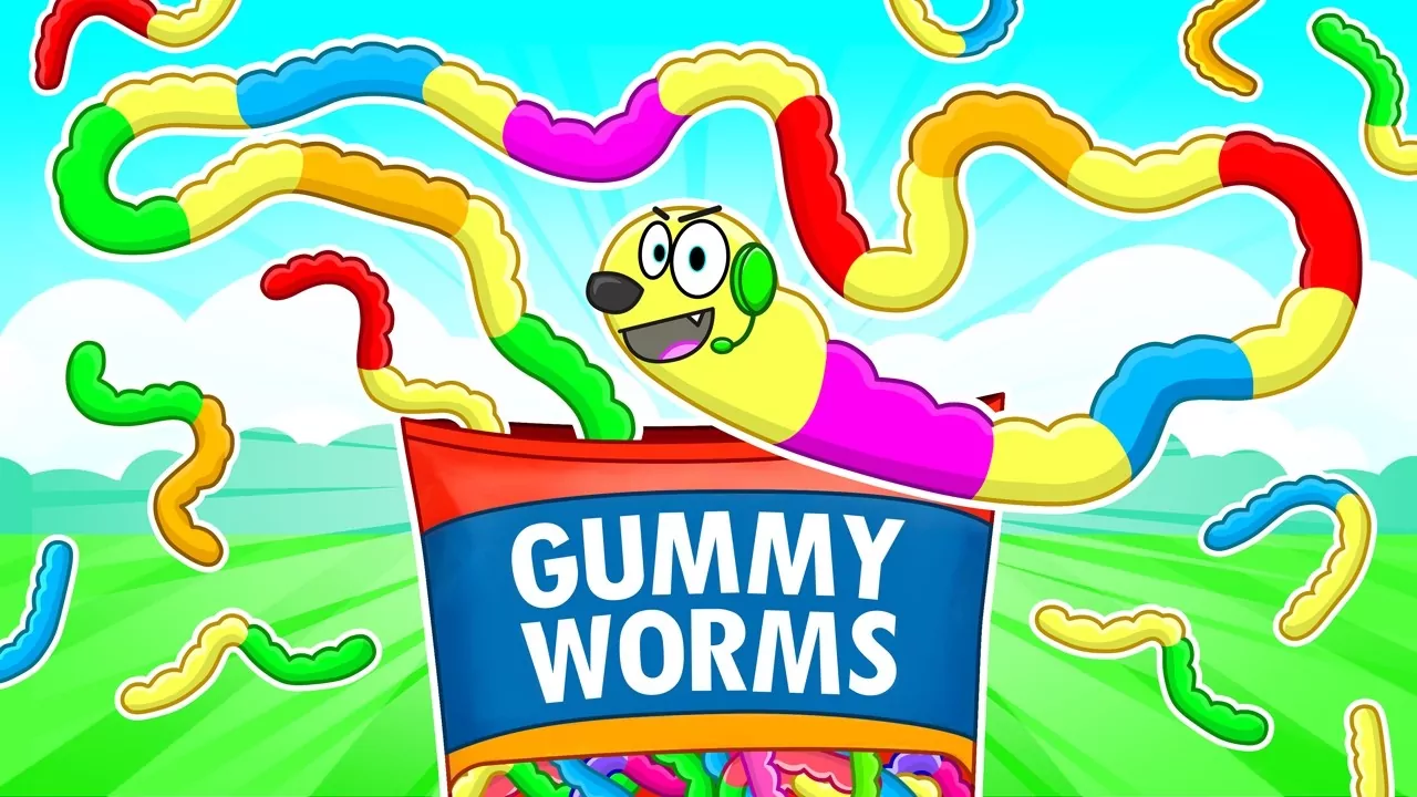 Today, I am the cutest little gummy worm! And my goal for today is to become as big as I can. Check it out, Zoe. I can eat pieces of candy in this gummy world, and it makes my size get bigger. Oh, my gosh. That looks so funny when the gummy worm eats. I know, right? It's so satisfying. Check it out though.