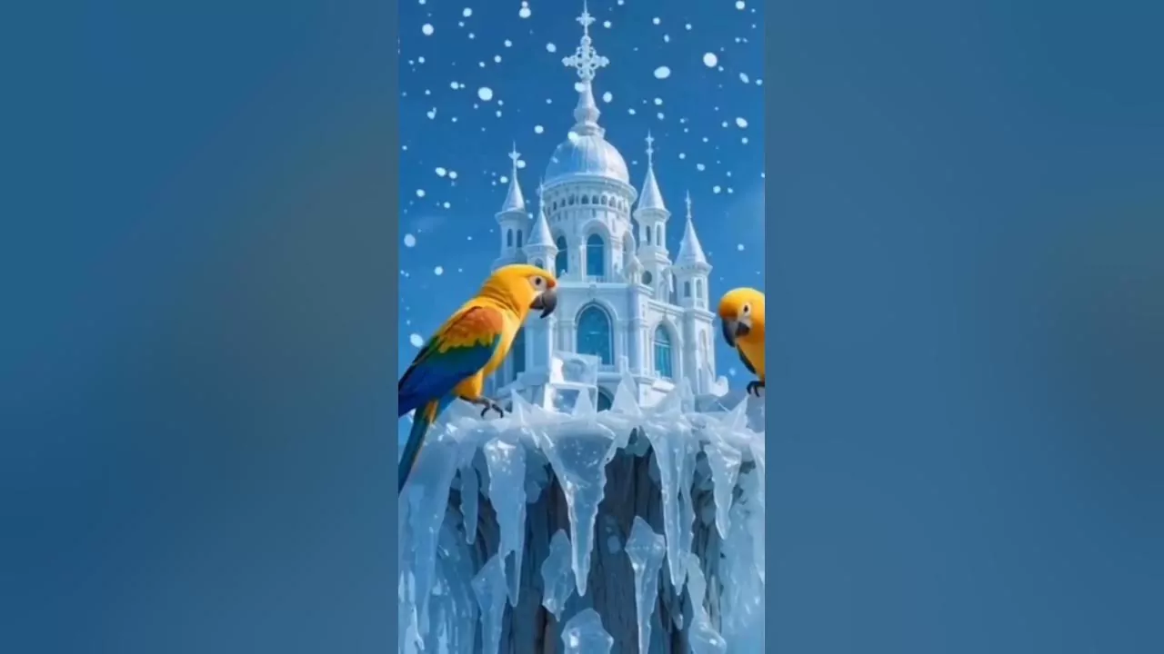 The narrator tells a heartwarming story about a father parrot and his child parrot who build a beautiful ice palace through love and hard work. The narrator's voice guides the audience through the magical tale.