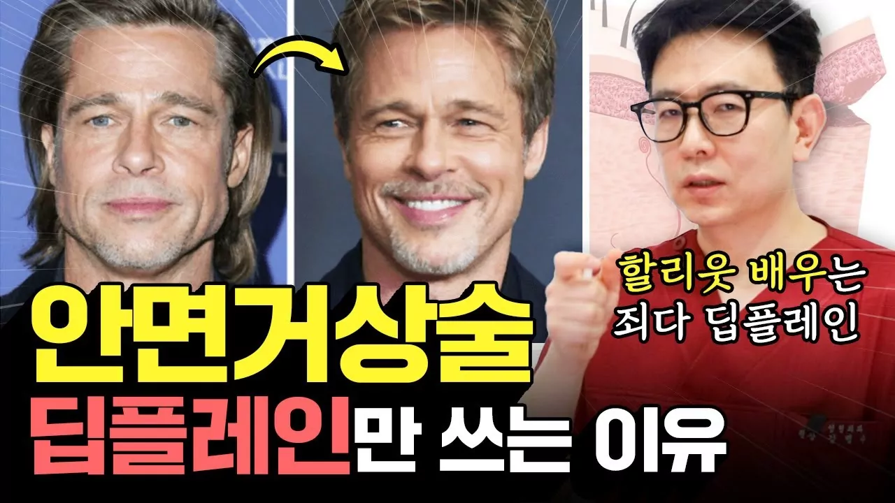 안면거상도 딥 플레인이 조금만 더 발달되면 정복이 될 거라고 봐요. 그러면 2030년쯤 되면 아마 대세는 다시 성형수술일 거예요. 이건 확실합니다. 최근에 많이 화제가 되고 있는 딥 플레인이라는 용어에 대해서 정확하게 설명을 하려고 하는데 할리우드 연예인들 안면거상 했다는 사진들 되게 많죠? 브래드 피트도 있고 란 헬스웨이도 있고 그다음에 킹 카다시안 어머니 이런 경우도 이제 다 뭐, 같은 의사 이런 말이 있는데 제가 알기로는 이제 할리우드 배우들이 하는 수술 방법이 딥 플레인이거든요. 딥 플레인이라는 거는 어떻게 보면 되게 획기적인 변화거든요.