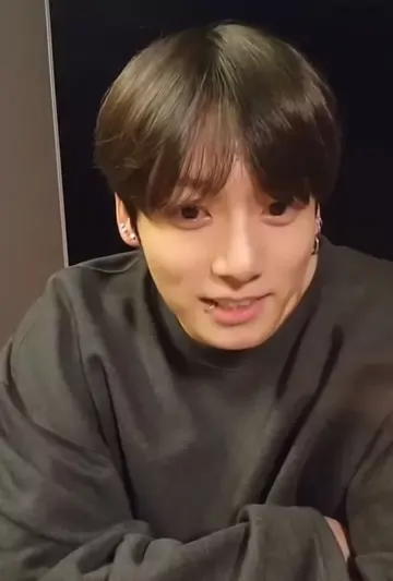 The speaker, Jungkook, is directly addressing the audience in a casual, conversational manner, sharing his personal thoughts and admiration for another person (Taehyung).