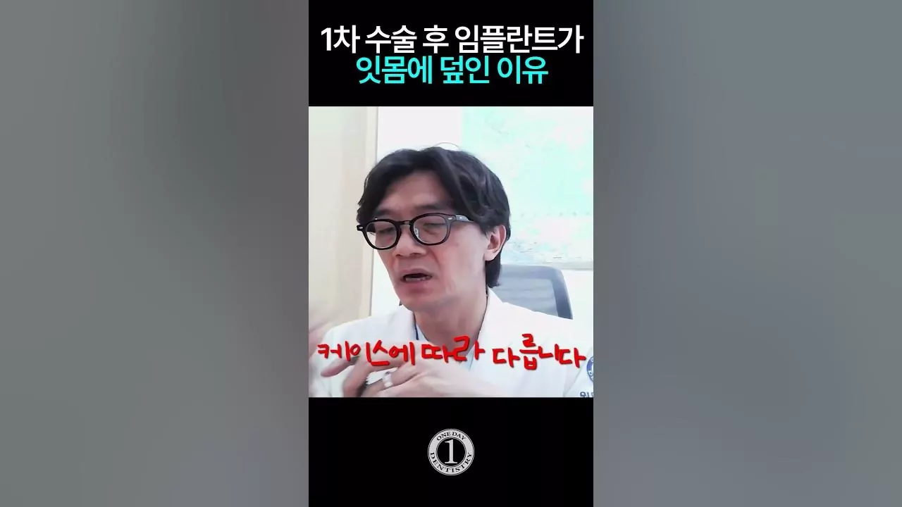 임플란트 수술은 두 가지 타입이 있고요. 이렇게 보이는 것처럼 어, 임플란트를 뿌리를, 뿌리를 심고 잇몸을 덮어내는 일차 수술로 하는 경우들이 있고, 뼈가 좀 약하거나 고정이 안 좋은 경우는, 아니면 뼈 이식을 좀 많이 한 경우 이렇게 덮어버리고요. 어, 위쪽에 뿌리 위에 이제 힐링 어버트먼트라는 거나 아니면 어버트먼트를 이렇게 연결해서 뭔가 기둥이 보이도록 꿰매기도 해요. 그래서 두 가지 타입이 있고 환자분의 상태에 따라서는 겉으로 보이지는 않죠. 보통은 이제 엑스레이에 보여-- 찍어서 보여드리니까 뿌리가 심겨 있는 거고, 요 부분을 연결하는 부분이 밖으로 보이기도 하고 안 보이기도 합니다. 그래서 정확하게는-